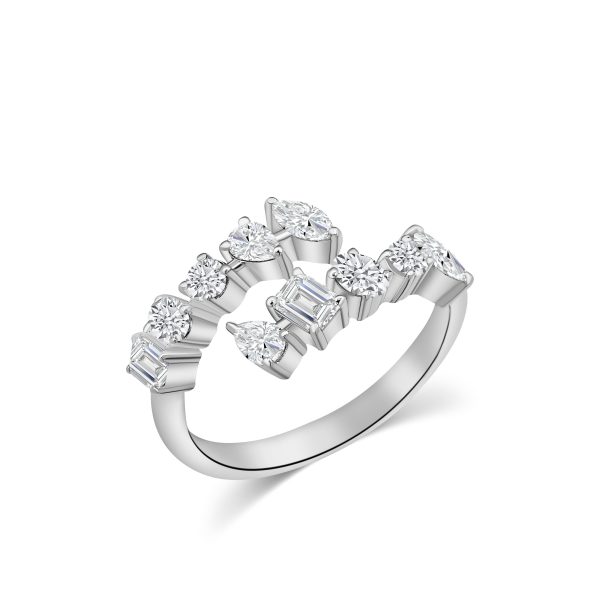 הטבעת עשויה מזהב 14 קראט, במשקל 3.1 גרם, ומעוטרת ב10 יהלומים טבעיים בצורות טיפה, אמרלד, אובל, עגול, מרקיזה, במשקל כולל של 0.91ct, בצבע F ובניקיון VS, המבטיחים ברק וניצוץ מרהיב.