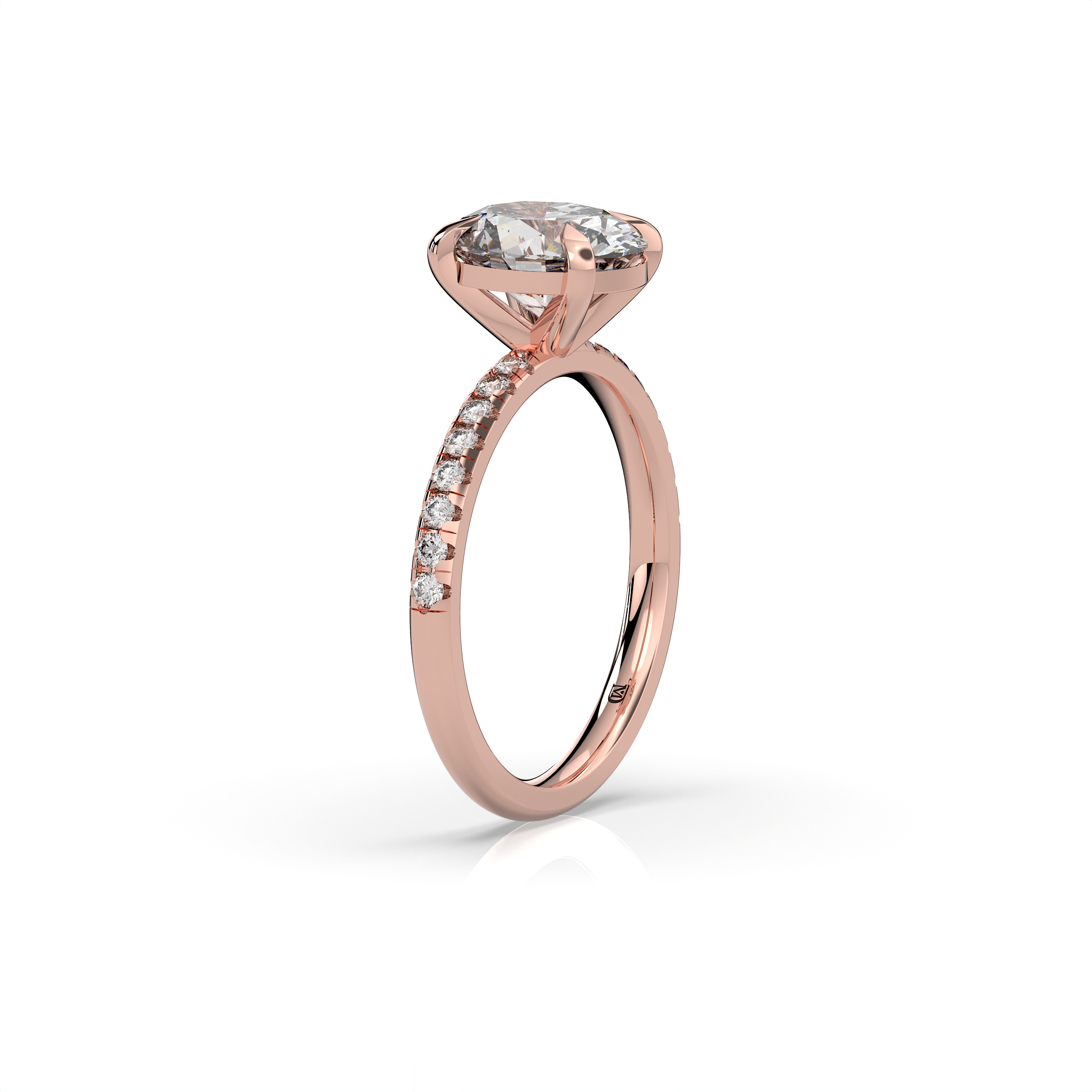 במרכז הטבעת משובץ יהלום מעבדה במשקל 2 קראט, בצבע E ובניקיון EVVS2, שילוב המבטיח מראה בהיר, נקי וקריסטלי עם נצנוץ מרהיב מכל זווית. לצידי האבן המרכזית משובצות 16 אבנים צדדיות במשקל כולל של 0.20 קראט, המוסיפות עומק, ברק ועדינות יוקרתית לעיצוב הכולל.