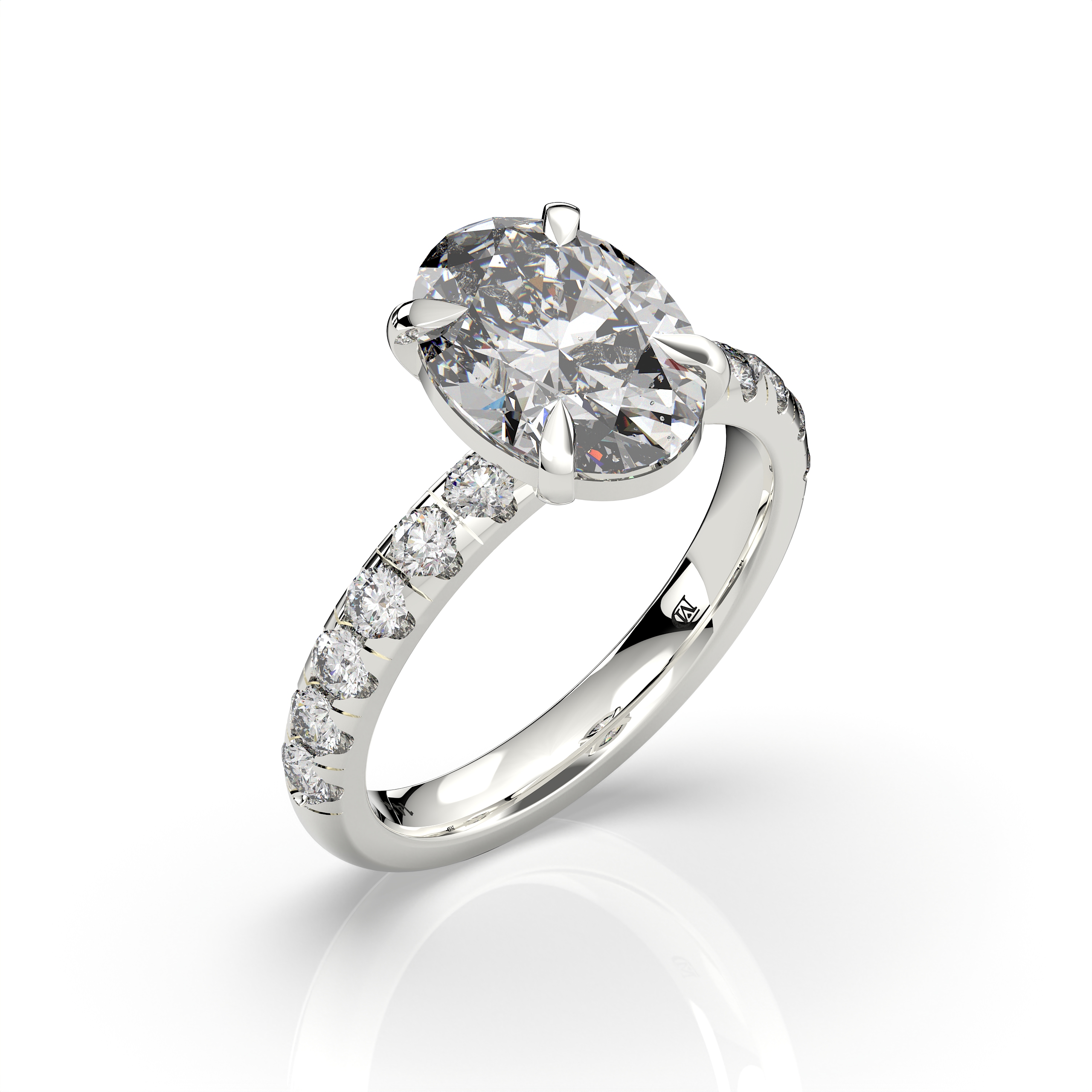 הכירו את טבעת האירוסין אובל קלאסית 2.5 קראט עם 12 אבנים צדדיות, טבעת יוקרתית ומלאת נוכחות המשלבת עיצוב קלאסי עם קווים רכים, אלגנטיים ומחמיאים. צורת האובל מעניקה לטבעת מראה מאורך ומעודן, המדגיש את יופייה של האבן המרכזית ומוסיף לה ברק יוקרתי.