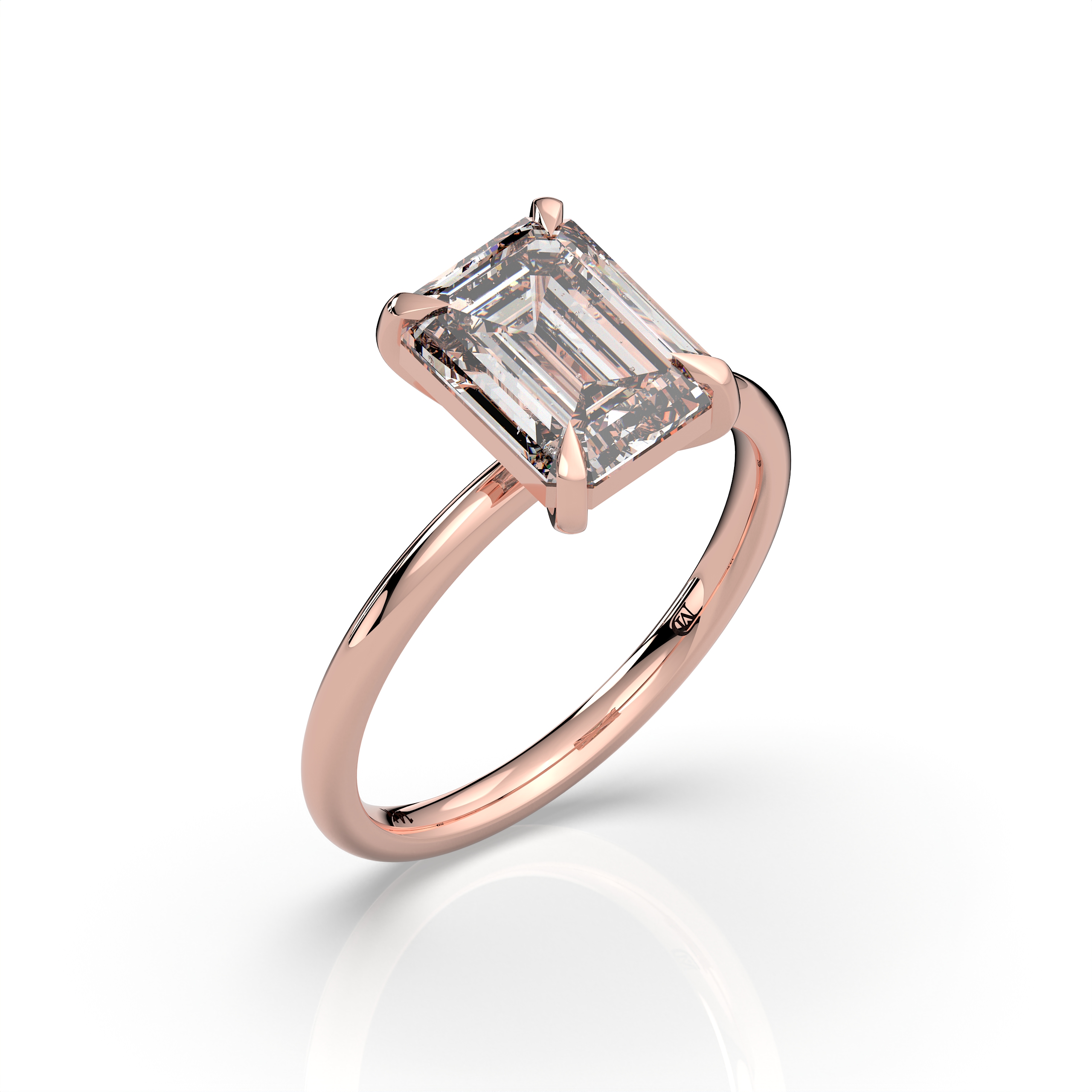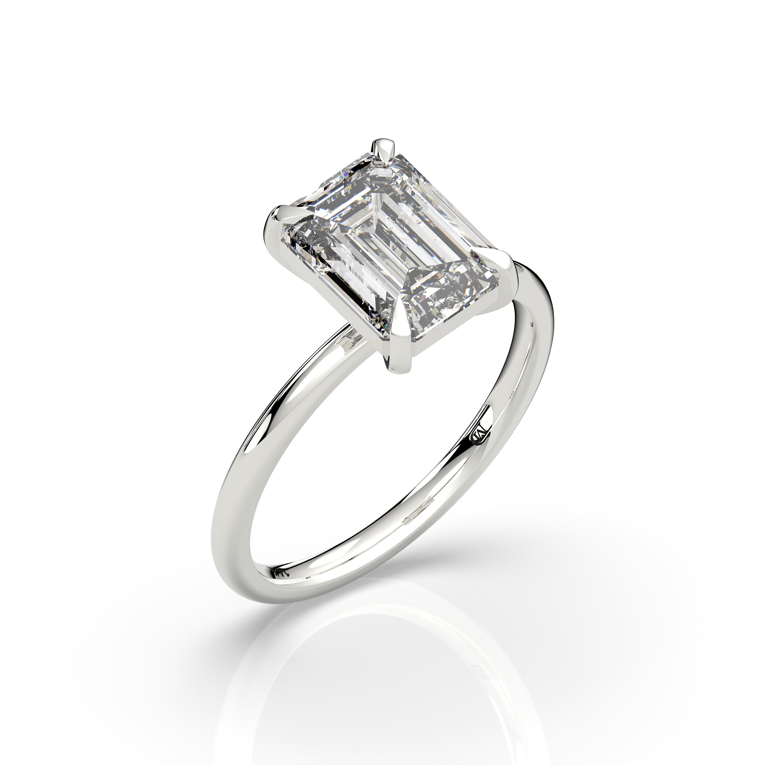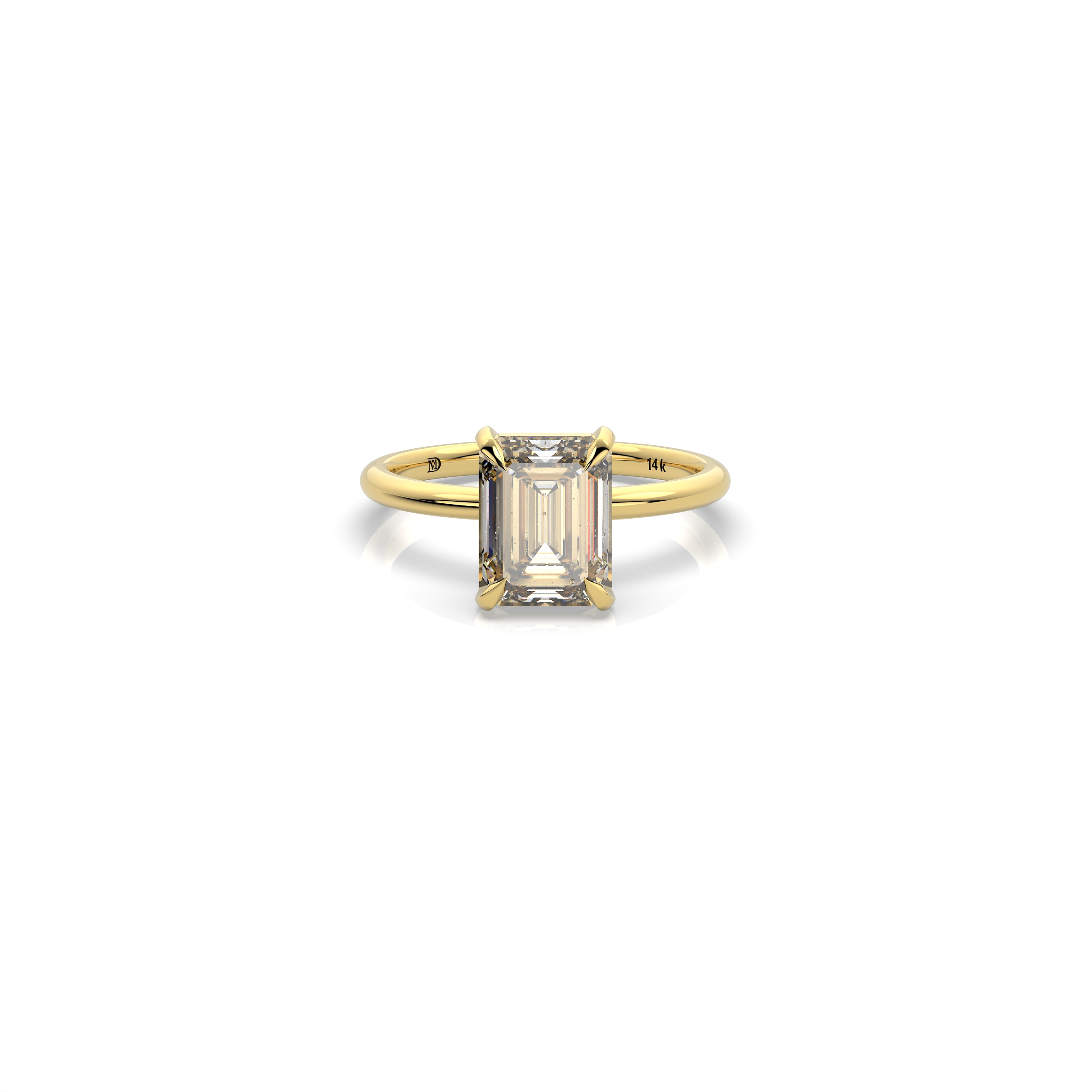 במרכז הטבעת משובץ יהלום מעבדה במשקל 3 קראט, בצבע E ובניקיון EVVS2, שילוב המבטיח מראה בהיר, נקי וקריסטלי עם ברק חד ונצנוץ מרהיב מכל זווית. עיצוב הסוליטר הקלאסי מדגיש את האבן המרכזית ומעניק לה את כל הבמה לזרוח.