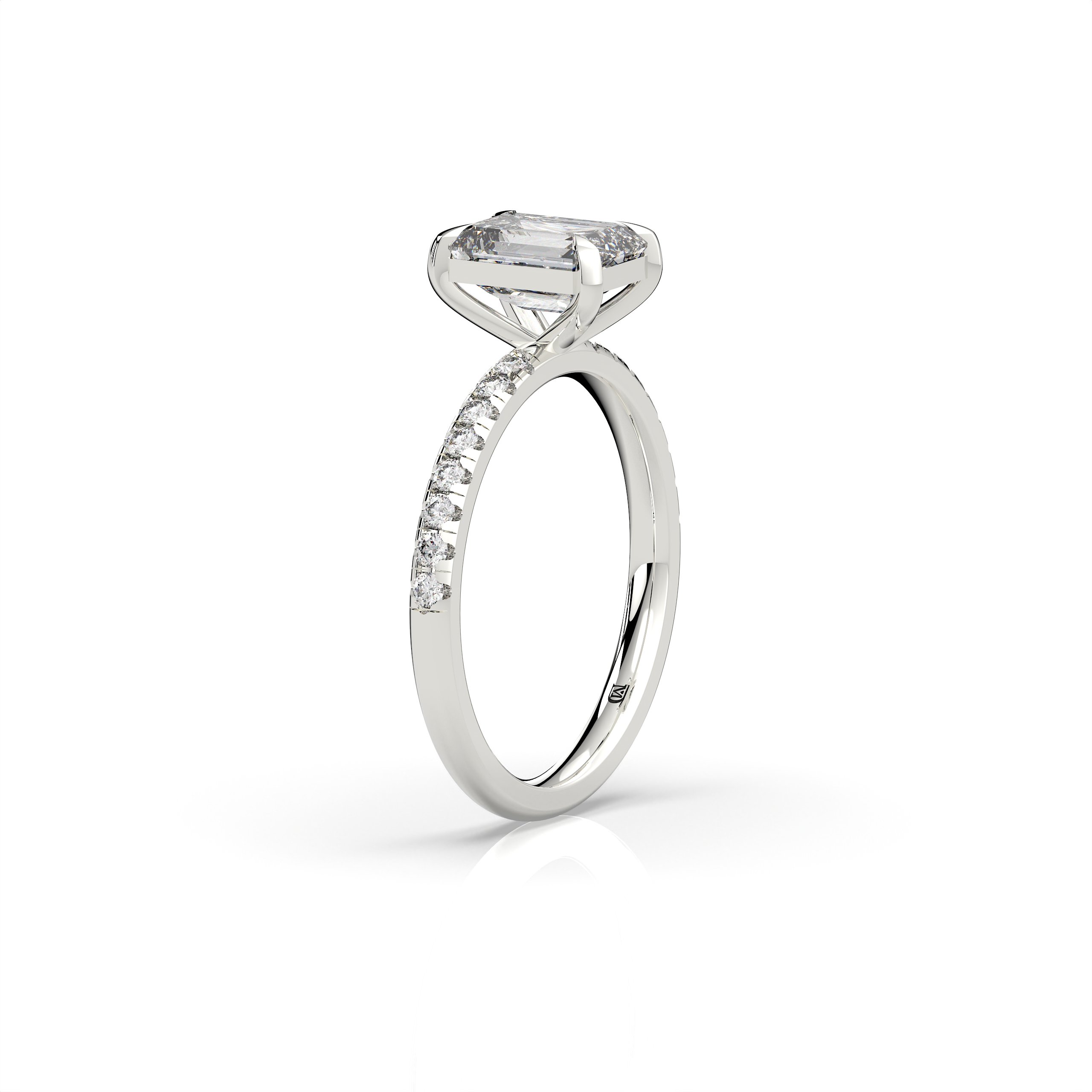 במרכז הטבעת משובץ יהלום מעבדה בצורת אובל במשקל 3 קראט, בצבע E ובניקיון EVVS2, שילוב המעניק ליהלום מראה בהיר, נקי וקריסטלי עם ברק עוצמתי ונצנוץ מרהיב מכל זווית. צורת האובל מוסיפה אורך ואלגנטיות, ומדגישה את יופיו של היהלום בצורה מושלמת.