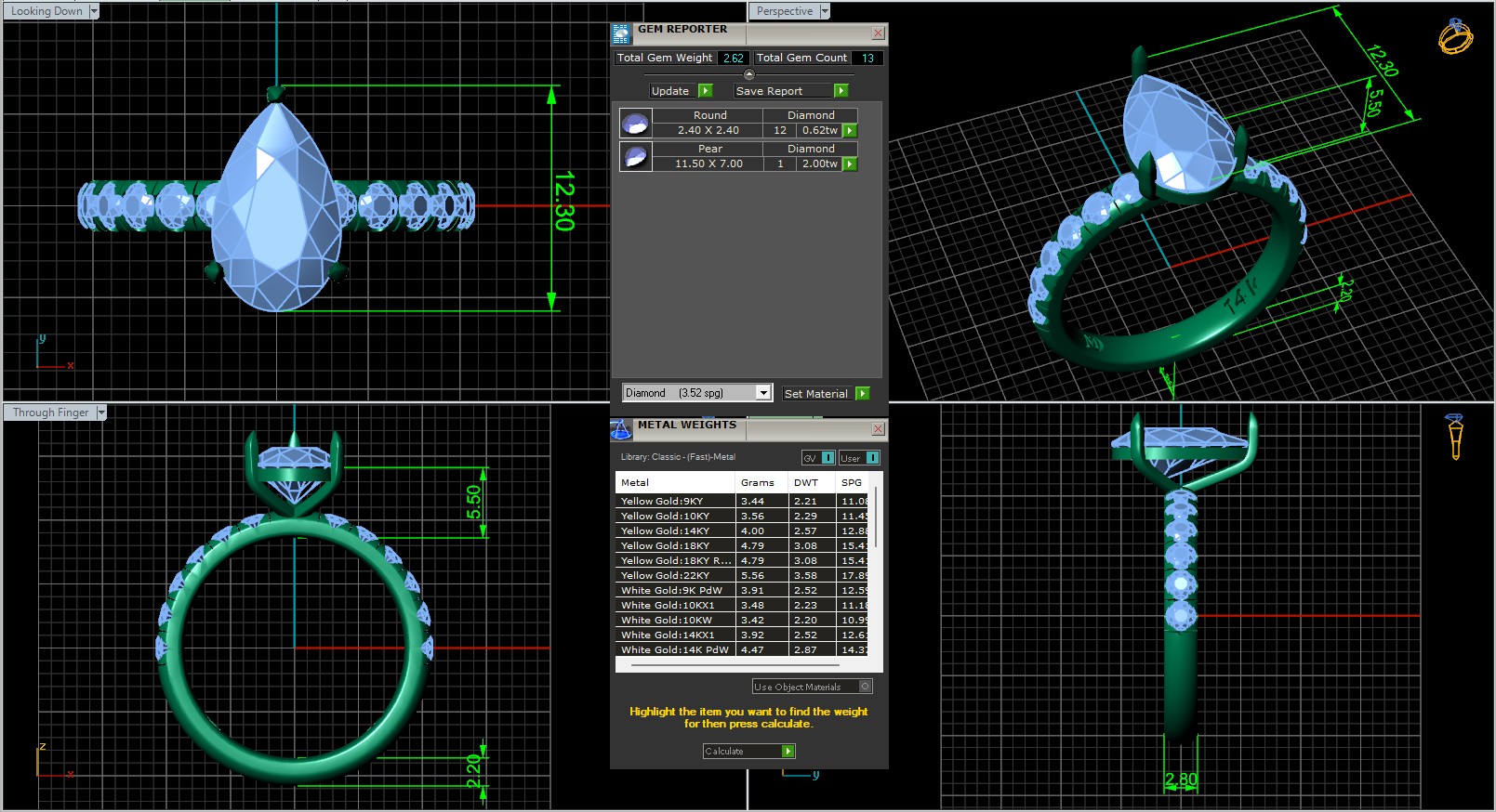 סה"כ משקל היהלומים בטבעת הוא 2.12 קראט, מה שיוצר מראה עשיר, מאוזן ומלא סטייל. הטבעת עשויה זהב 14 קראט, ומעוצבת בסגנון על־זמני שמתאים לרגעים המרגשים והמשמעותיים ביותר.