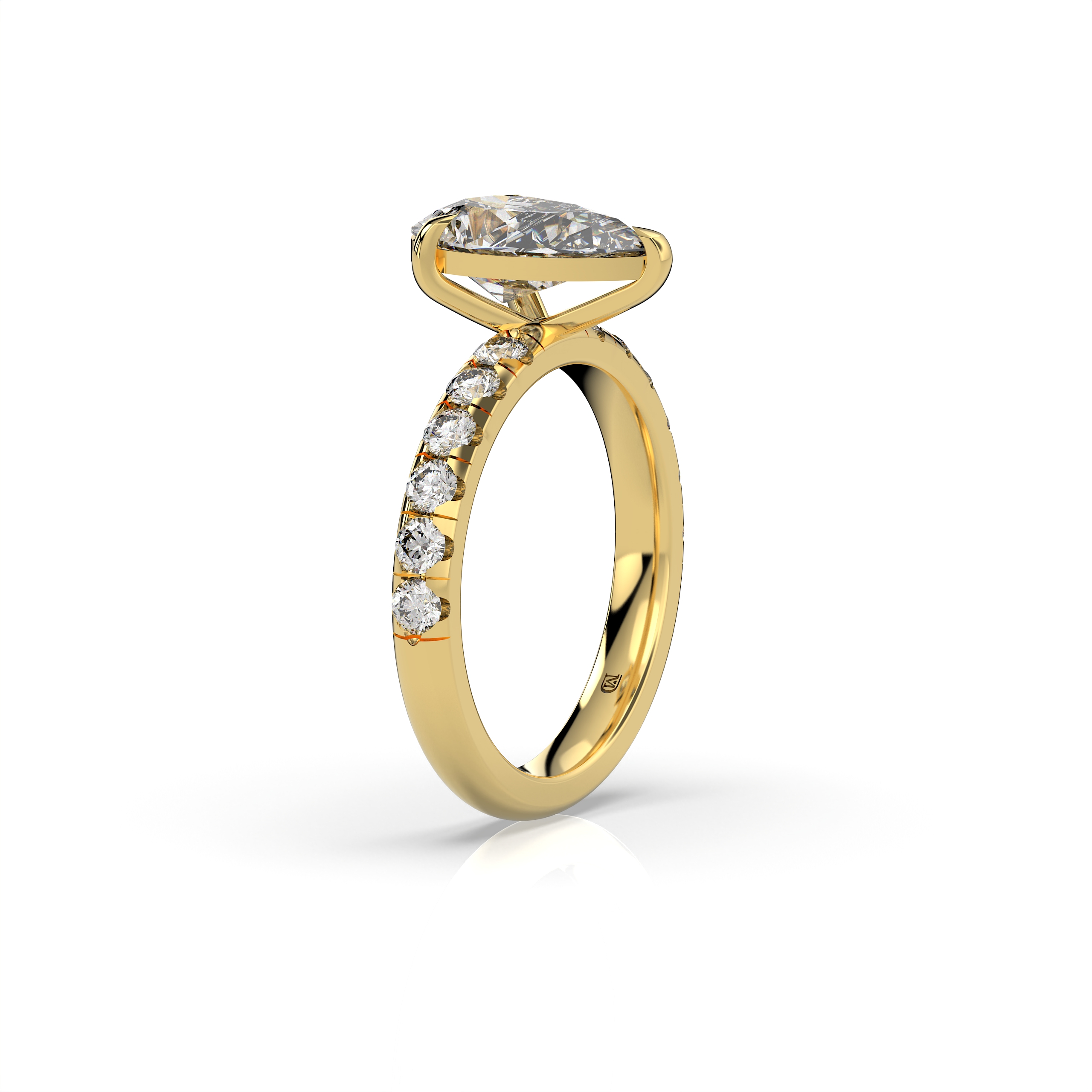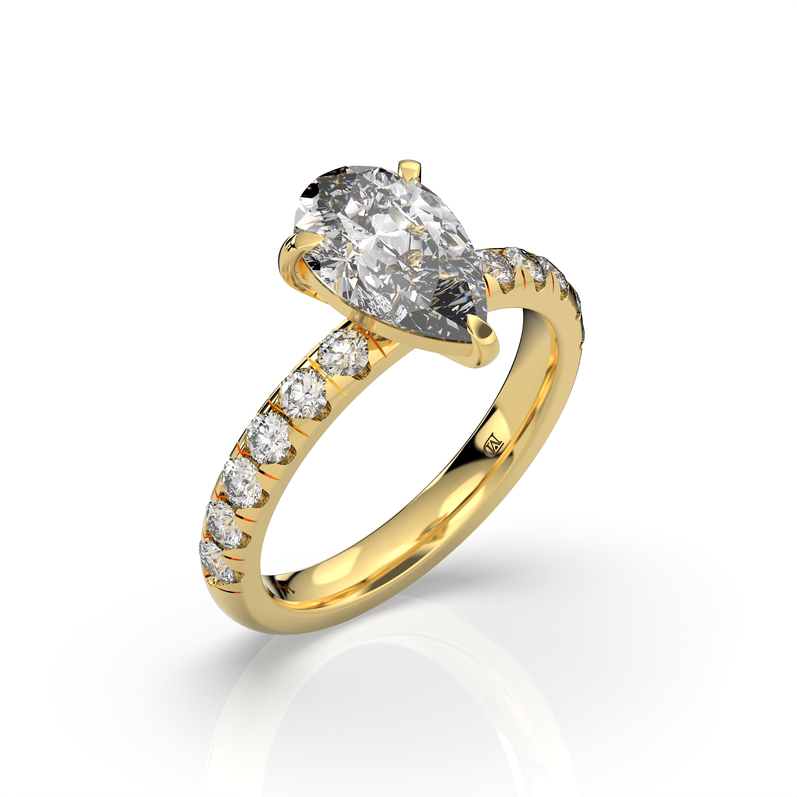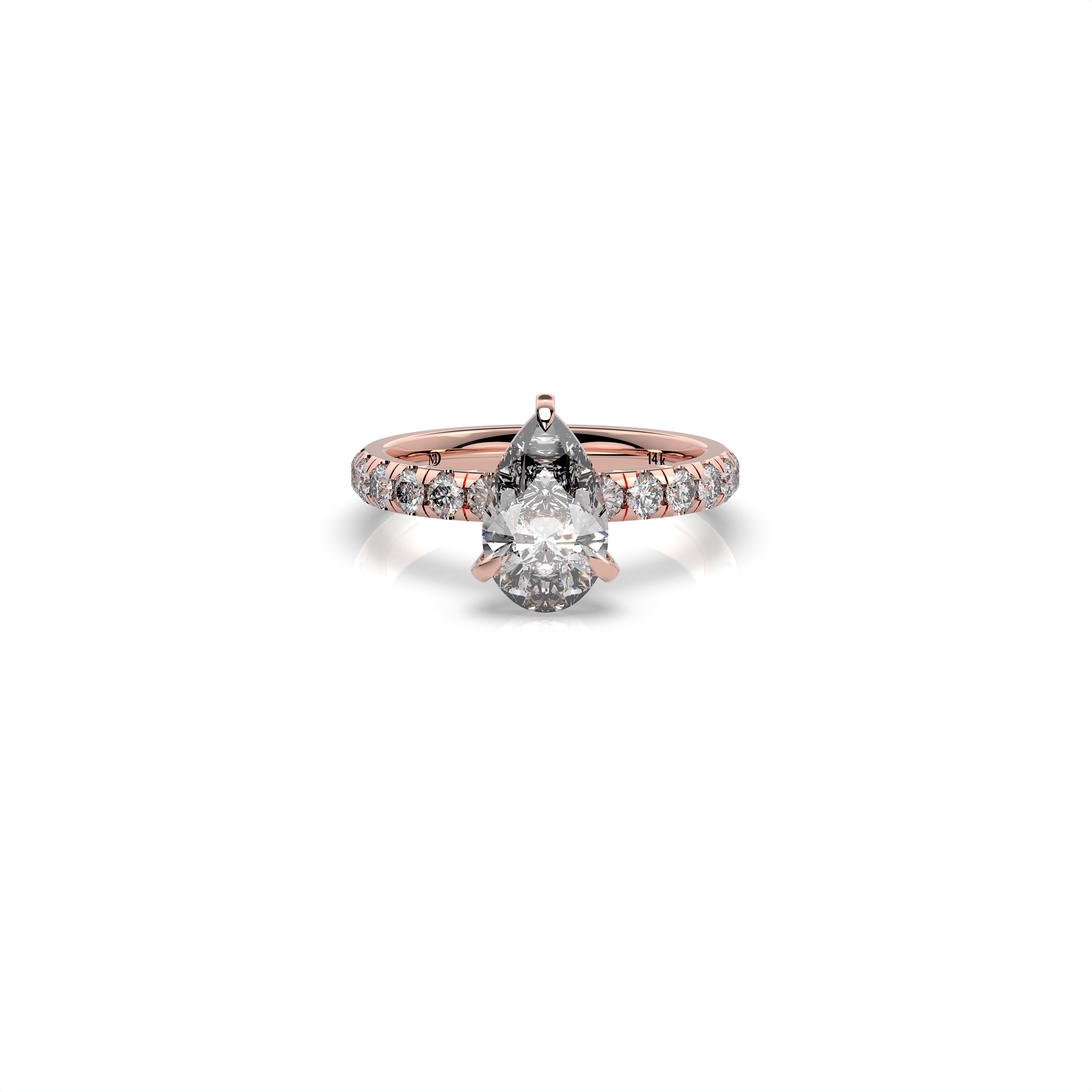 הכירו את טבעת האירוסין טיפה קלאסית 2 קראט עם 12 אבנים צדדיות, טבעת יוקרתית ומלאת נוכחות, המשלבת עיצוב קלאסי עם קווים נשיים, רכים ואלגנטיים. צורת הטיפה מעניקה לטבעת מראה מחמיא, רומנטי ומרשים במיוחד, כזה שמושך את העין בכל מבט.