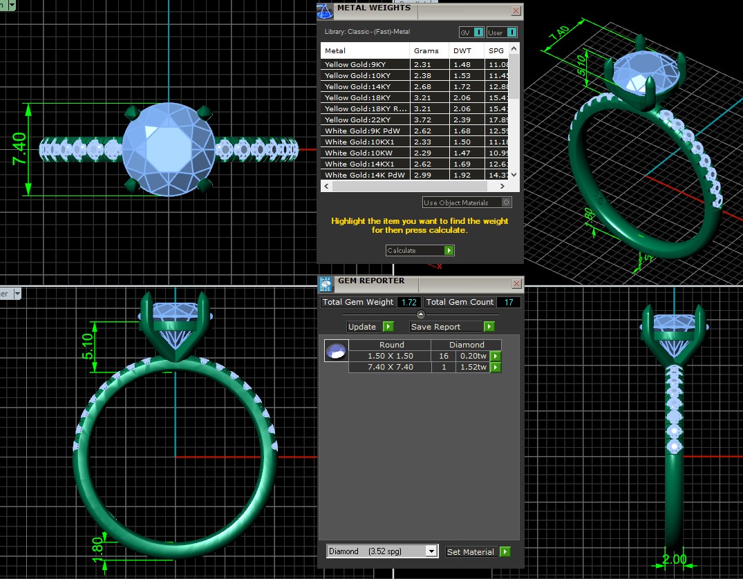 טבעת אירוסין קלאסית 1.5 קראט עם אבנים צדדיות
