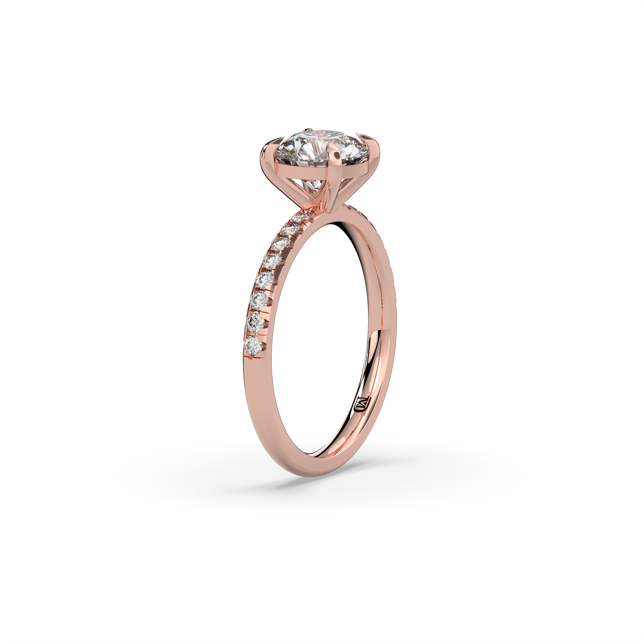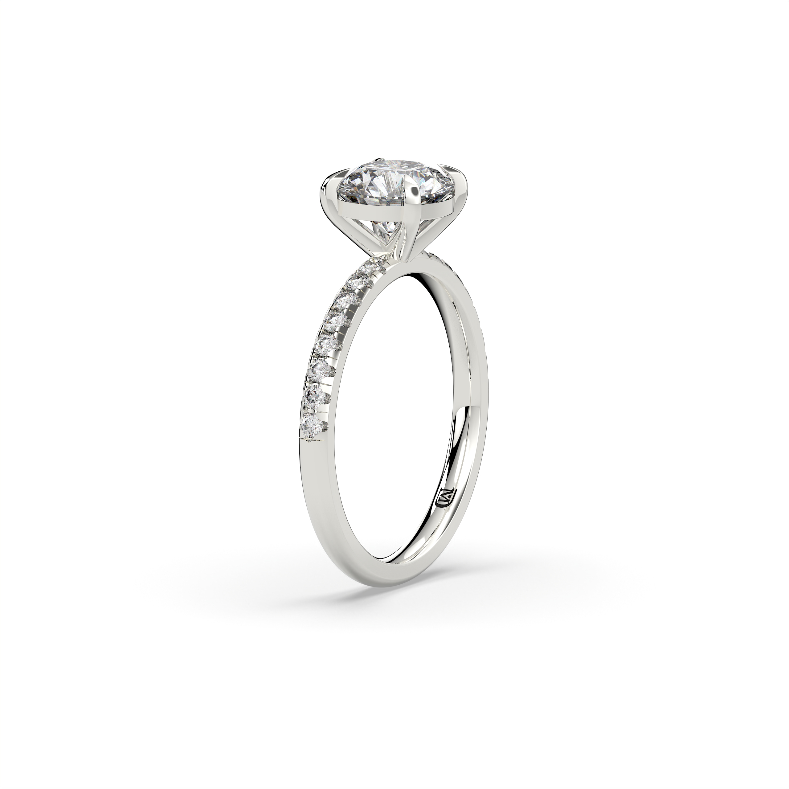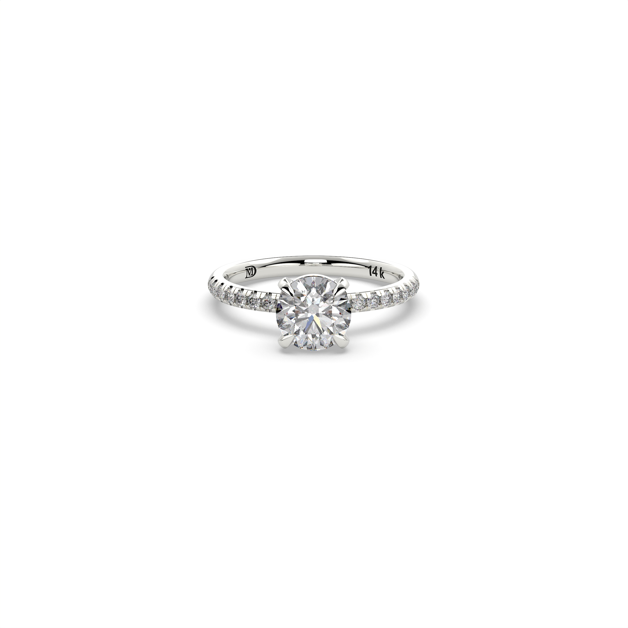 במרכז הטבעת משובץ יהלום מעבדה במשקל 1.5 קראט, בצבע E ובניקיון VVS, שילוב המבטיח ברק עוצמתי, שקיפות גבוהה ואיכות יוצאת דופן. לצידו משובצות אבני יהלום נוספות המשלימות את המראה ומעניקות לטבעת נצנוץ מכל זווית.
