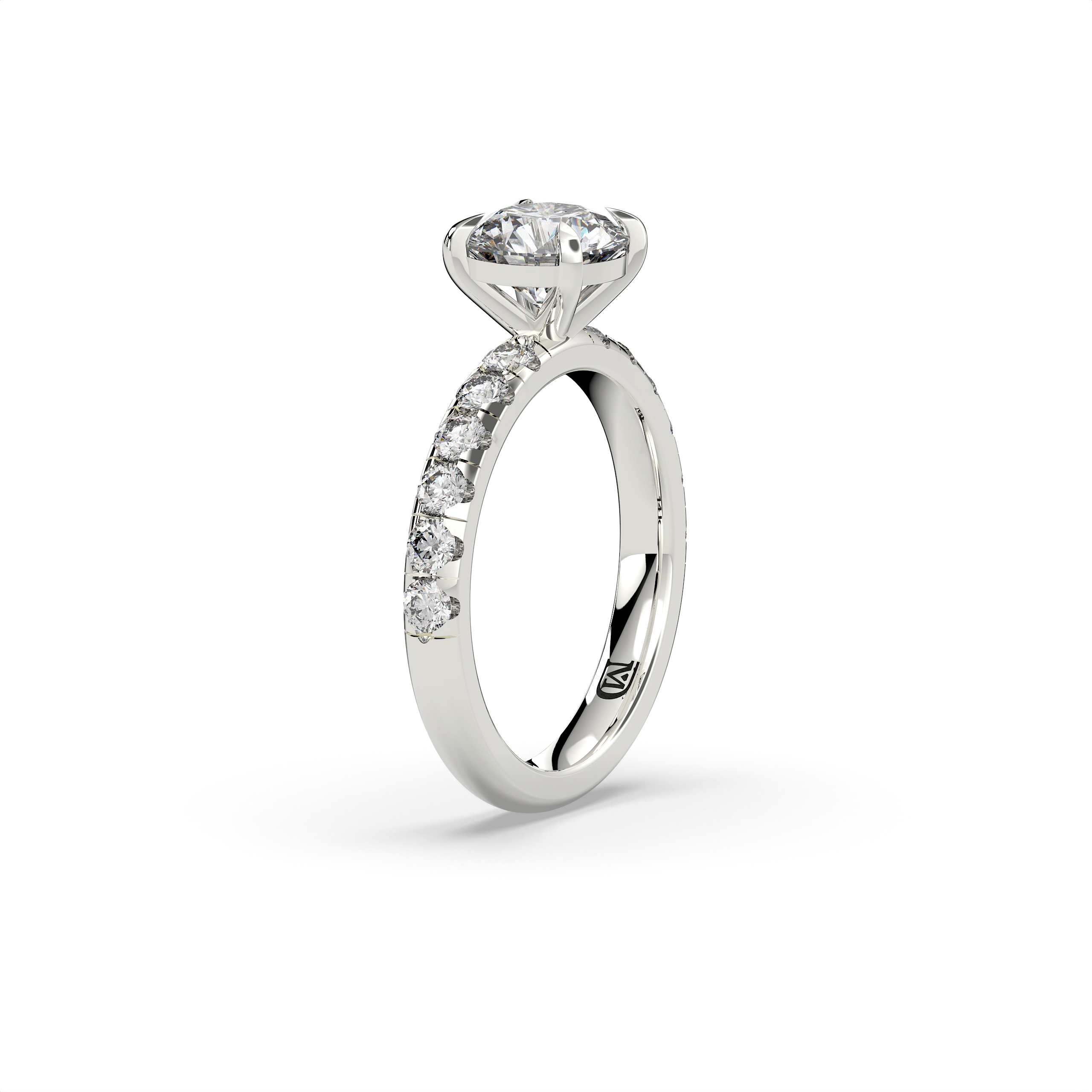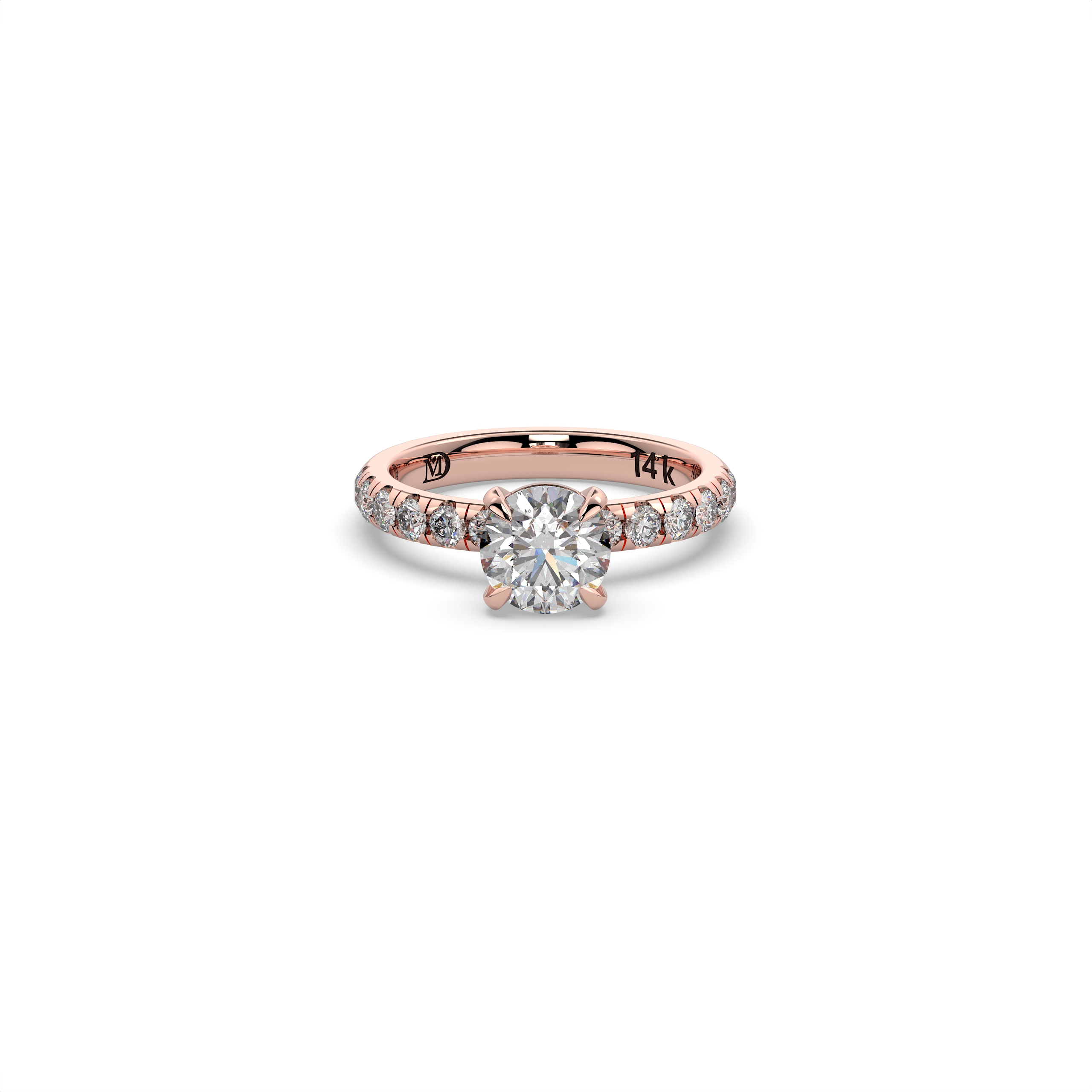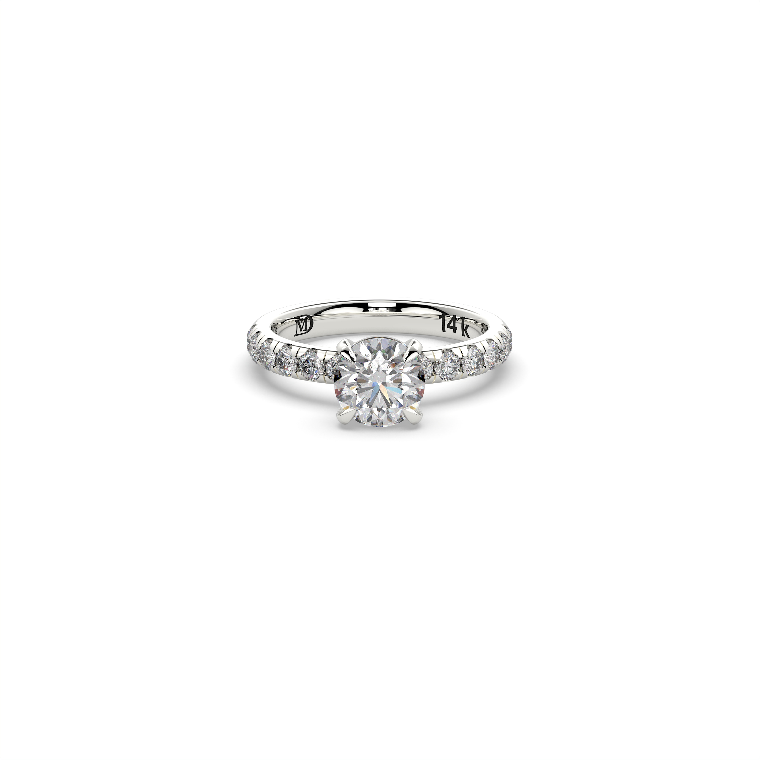 במרכז הטבעת משובץ יהלום מעבדה במשקל 1.5 קראט, בצבע E ובניקיון EVVS2, המעניקים ליהלום מראה בהיר, נקי ויוקרתי עם נצנוץ מרהיב מכל זווית. לצידי האבן המרכזית משובצות 12 אבנים צדדיות במשקל כולל של 0.62 קראט, המוסיפות לטבעת עומק, ברק ונוכחות אלגנטית במיוחד.