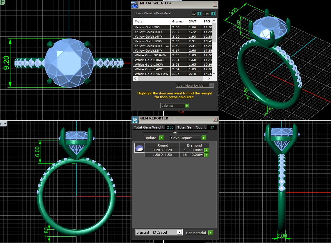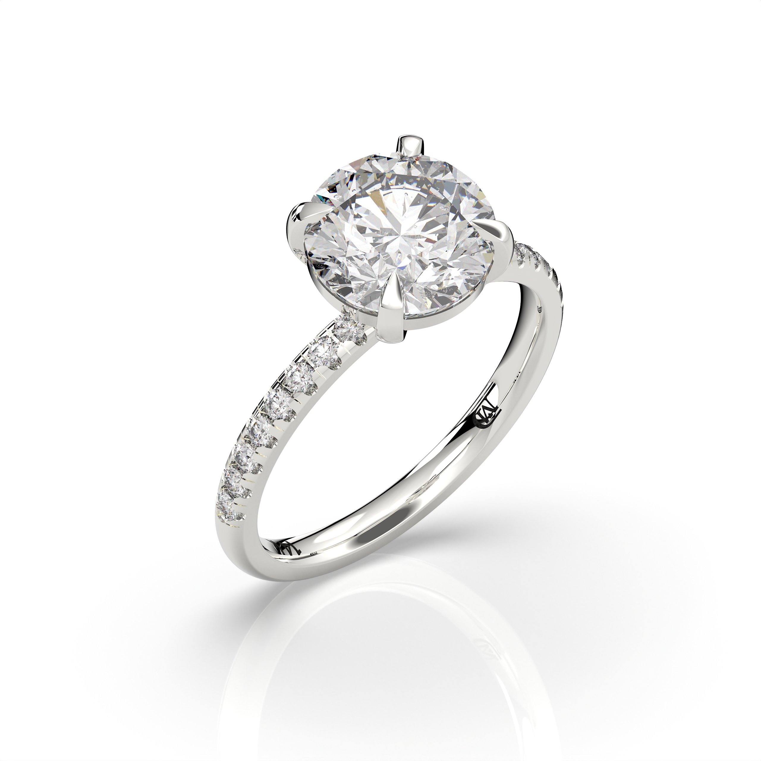 טבעת אירוסין קלאסית 3 קראט עם אבנים צדדיות